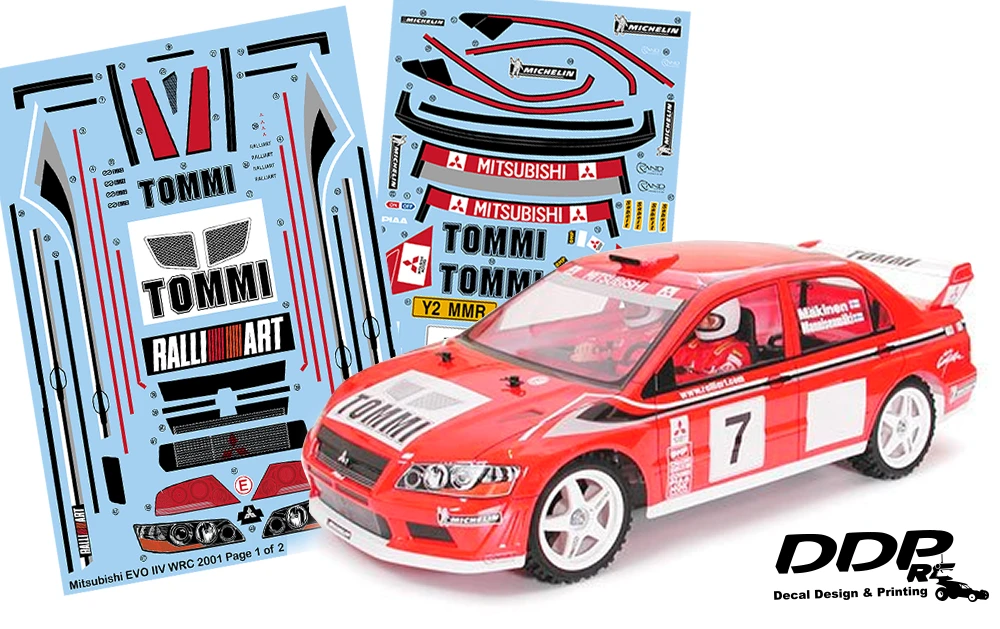 RC 10th 1:10 scale Mitsubishi Evo VII WRC 2001 Decals