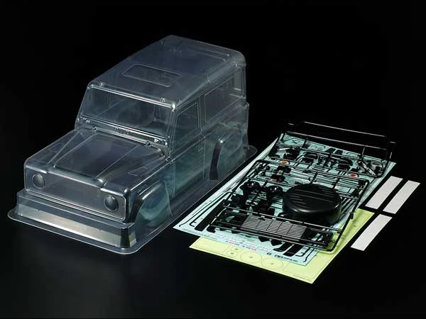 This is a spare R/C body parts set of the Land Rover Defender 90. It is made of durable polycarbonate material with detail parts made of ABS plastic. The body can be mounted on Tamiya’s CC-01 and CR-01 truck chassis machines.